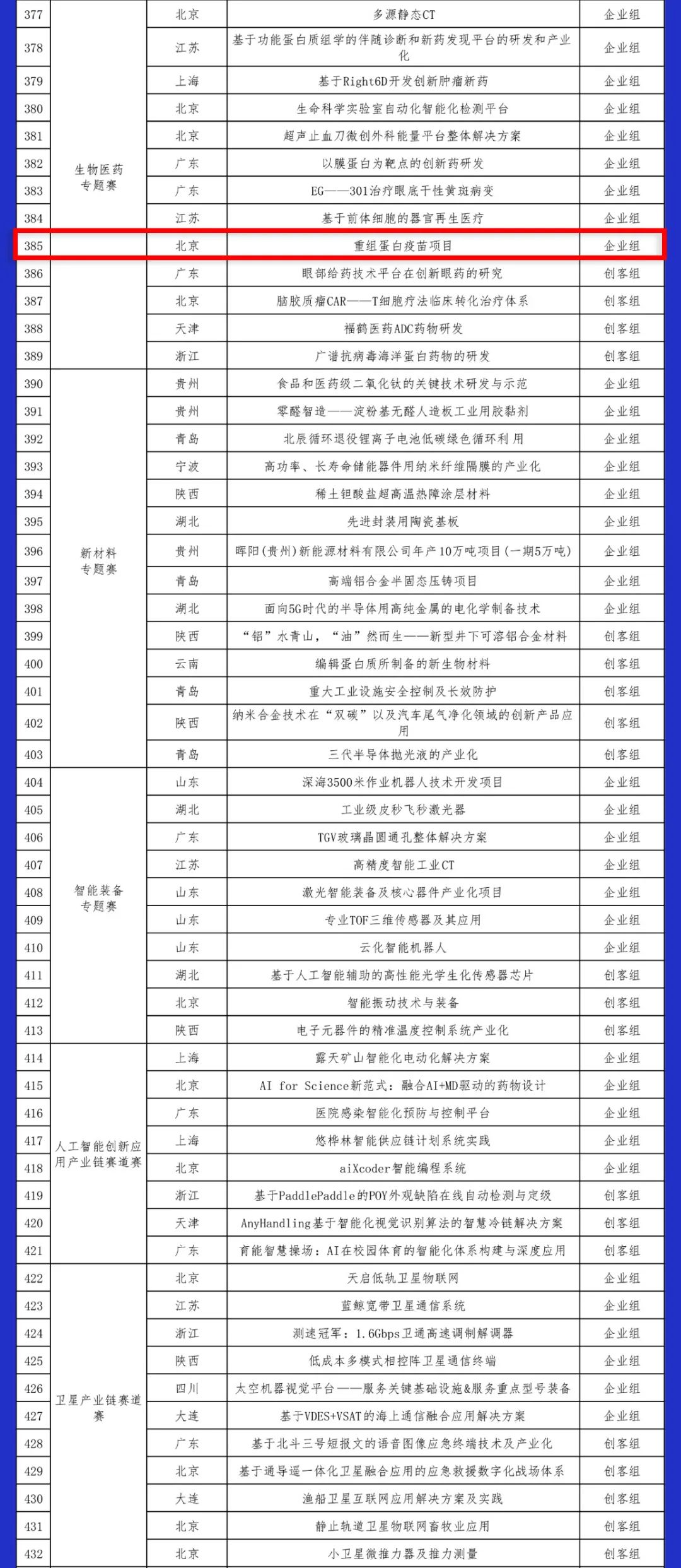 康乐卫士重组蛋白疫苗项目上榜“创客中国”全国500强