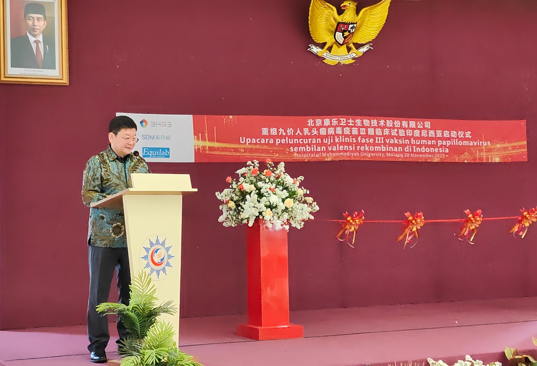 2023年11月21日,北京康乐卫士生物技术股份有限公司(以下简称“公司”或“康乐卫士”)在印度尼西亚Muhammadiyah大学附属医院(Muhammadiyah University Malang Hospital)正式启动了“重组九价(6/11/16/18/31/33/45/52/58型)人乳头瘤病毒(HPV)疫苗(大肠埃希菌)” (以下简称“九价HPV疫苗”或“本疫苗”)Ⅲ期临床试验的入组接种,这标志着康乐卫士成为了国内首家在海外独立启动九价HPV疫苗Ⅲ期临床的企业。此次试验于2023年9月底得到了印度尼西亚食品药品监督管理局(Kepala Badan Pengawas Obat dan Makanan ,简称“BPOM”)的批准。BPOM观察员、康乐卫士团队、研究方以及CRO公司等项目相关方共同参与了此次入组接种启动会。