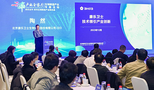 作为云南省疫苗企业代表,康乐卫士CEO陶然受邀发表主题演讲,介绍了康乐卫士核心在研产品进展及在云南滇中新区生产基地建设情况。